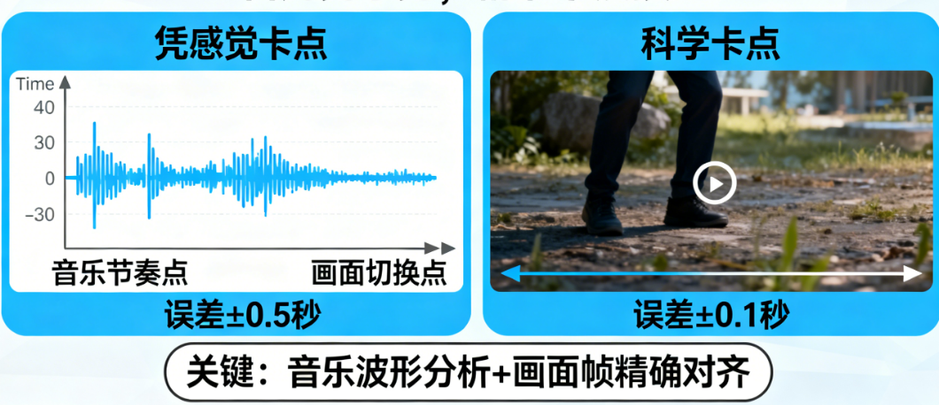 在学方法之前,咱们先搞清楚问题出在哪。如何让视频转场/关键画面精准卡在音乐鼓点上? 为什么明明感觉对了,做出来却总是差一点?卡不上点,通常不是耳朵不好,而是下面这几个常见原因在捣鬼:
