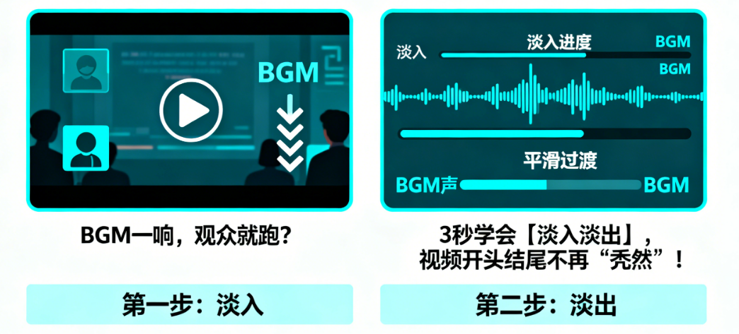 你是不是也遇到过这种尴尬?视频一开始,音乐“砰”一声就炸出来,把观众吓一跳;视频结束了,音乐却“咔嚓”一下被切断,留下满屏的突兀感。就这么一点点细节,却让整个视频的专业感瞬间掉线,观众也觉得体验很“跳戏”。